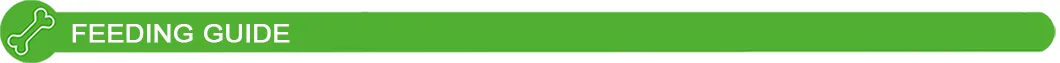 The dosage varies by dog size: under 5kg (1-10g), 5-10kg (10-20g), 10-25kg (20-40g), and over 25kg (40-60g).
